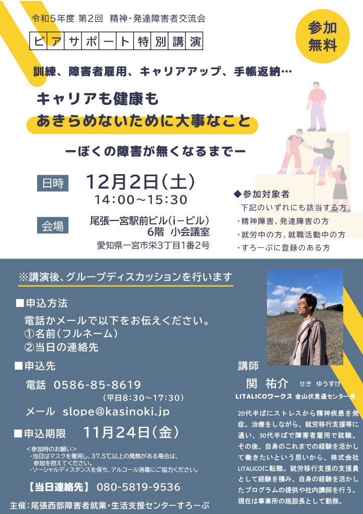 12/2(土)に第2回精神・発達障害者交流会を開催します。